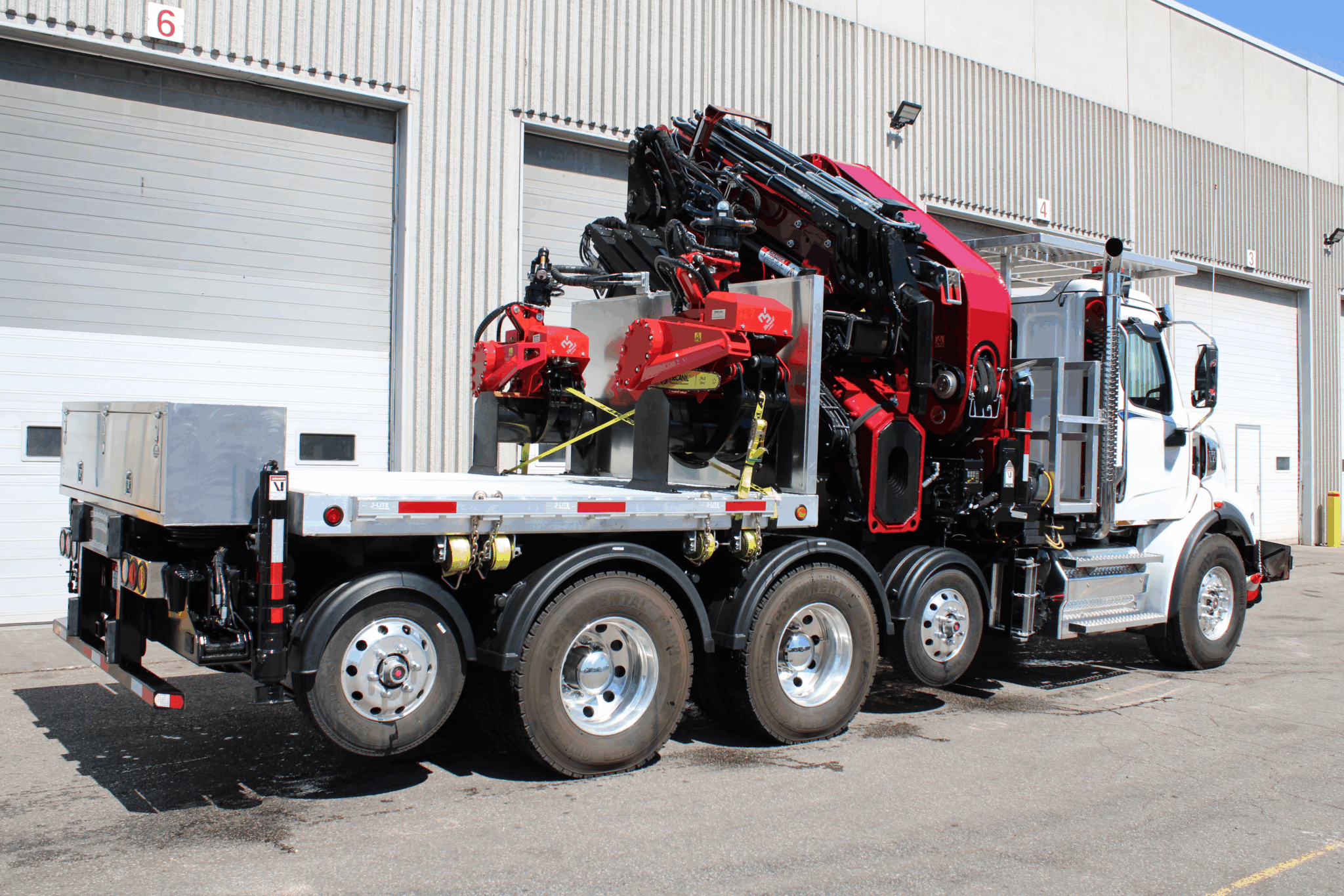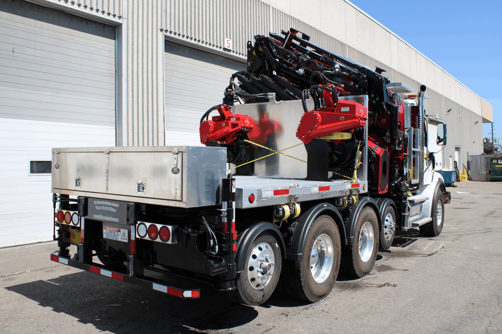 - Installed back of cab, with custom engineered integral sub-frame by BIK to meet or exceed all CMVSS Standards, – Load Chart in FT. & LBS.