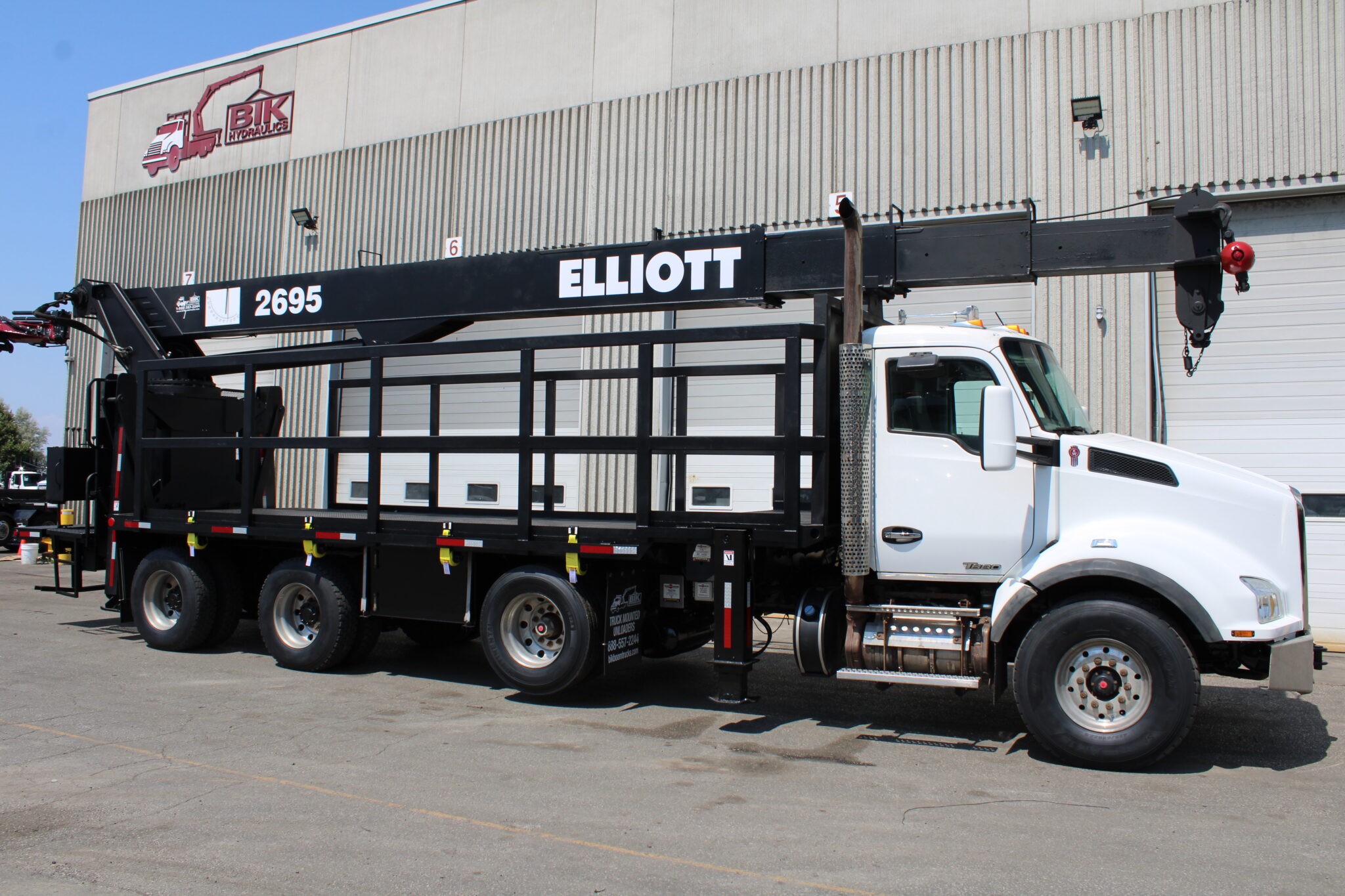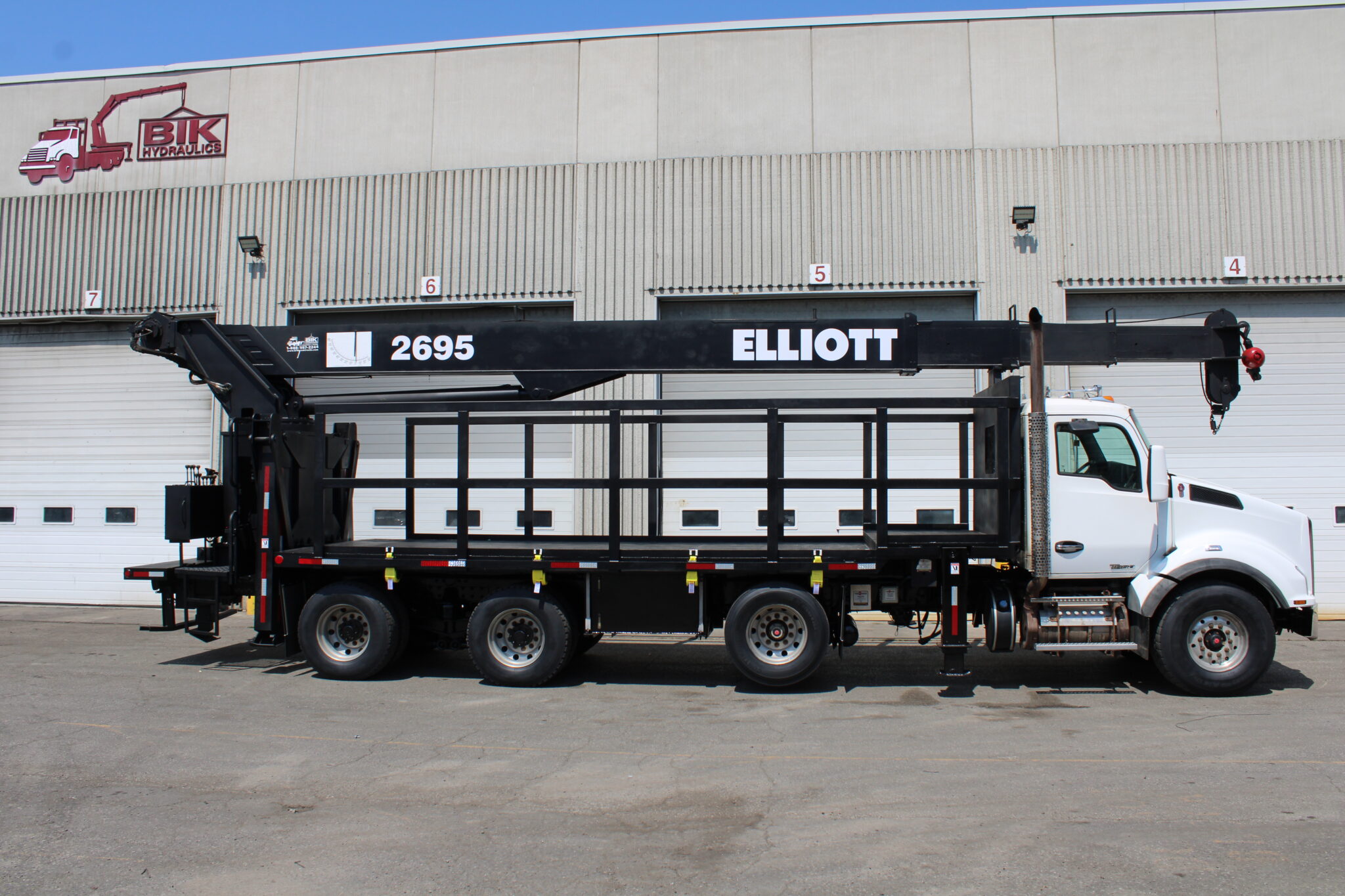 - Painted ELLIOTT Imron White, Red, and Black w/ red decals – 22’ Steel Deck with boom rest